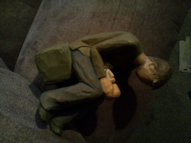a pampered chef apple peeled on the stand! , a Willow tree "new dad" (for less than $2!) , I also got a super cute lantern/candle holder. I couldn't get a picture of it , my room was too dark.